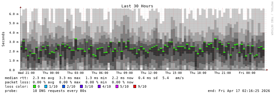 traceroute to 2606:4700:4700::1111 (2606:4700:4700::1111), 30 hops max, 80 byte packets - Generated at 2026-04-17 00:30:01