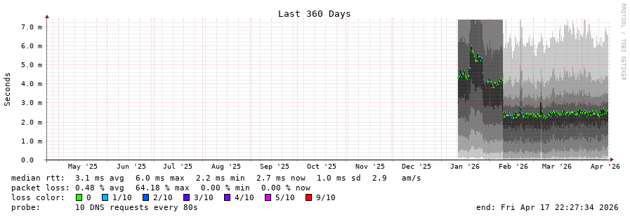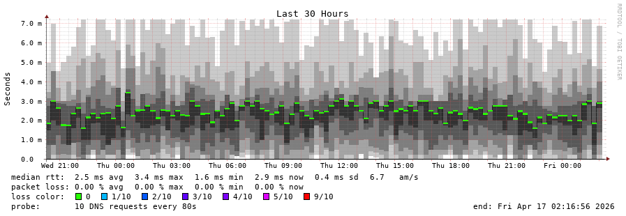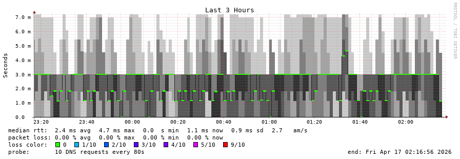 traceroute to 2620:fe::fe (2620:fe::fe), 30 hops max, 80 byte packets - Generated at 2026-04-17 00:30:01