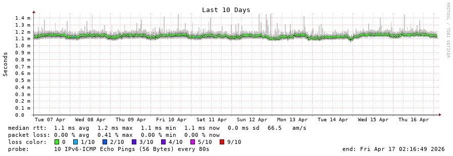 11 > po174.asw01.waw2.tfbnw.net (2620:0:1cff:dead:beef::4044) [AS32934] 1.190ms 1.227ms 1.115ms