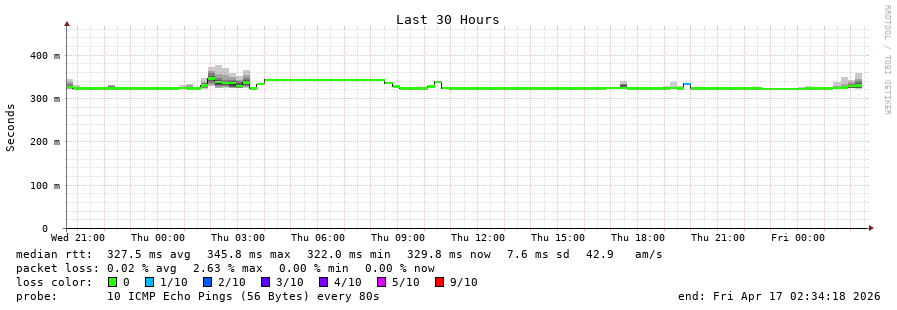 30 > ns2.vodafone.com.au.56.119.101.in-addr.arpa (101.119.56.250) [AS133612] 329.988ms 329.949ms 330.017ms