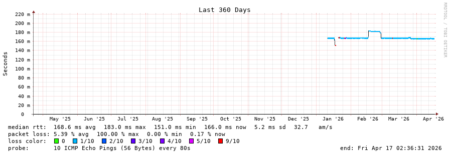 14 > 125.214.191.4 (125.214.191.4) [AS18001] 166.882ms 166.850ms 166.976ms