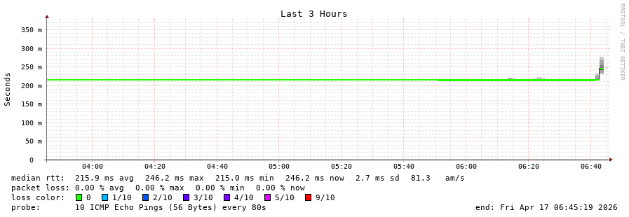 24 > 202.123.177.1 (202.123.177.1) [AS24337] 215.855ms 215.758ms 215.688ms