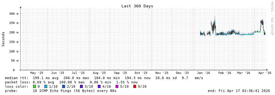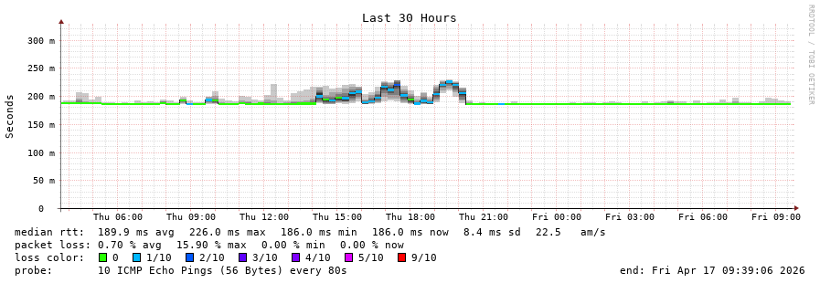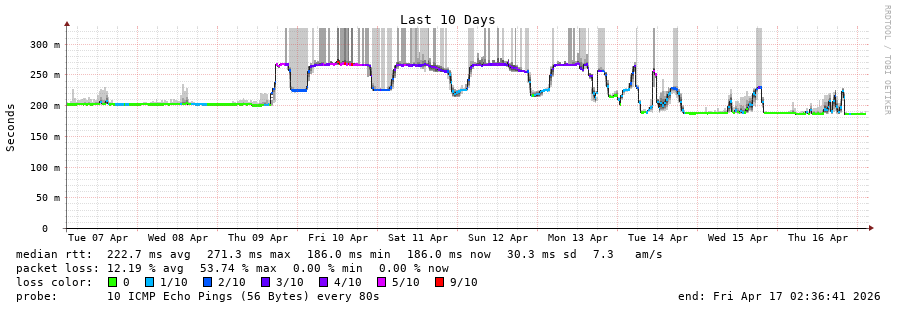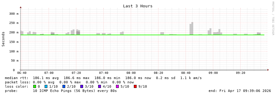 17 > 175.100.195.10 (175.100.195.10) [AS9304] 258.634ms 258.581ms 258.594ms