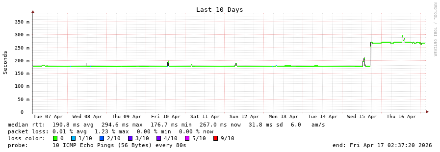 17 > unknown.telstraglobal.net (210.176.138.174) [AS4637] 266.527ms 266.700ms 266.713ms