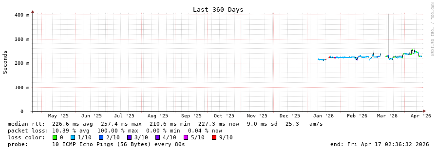 11 > ae3-7.rt.gsw.sin.sg.retn.net (87.245.232.222) [AS9002] 259.697ms 259.680ms 260.123ms