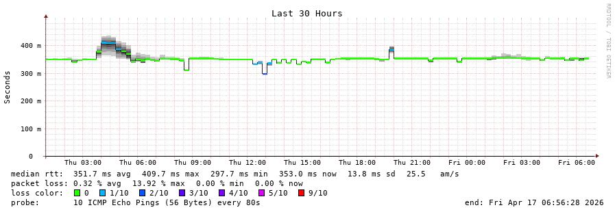 30 > 36.77.0.1 (36.77.0.1) [AS7713] 353.024ms 353.038ms 352.939ms