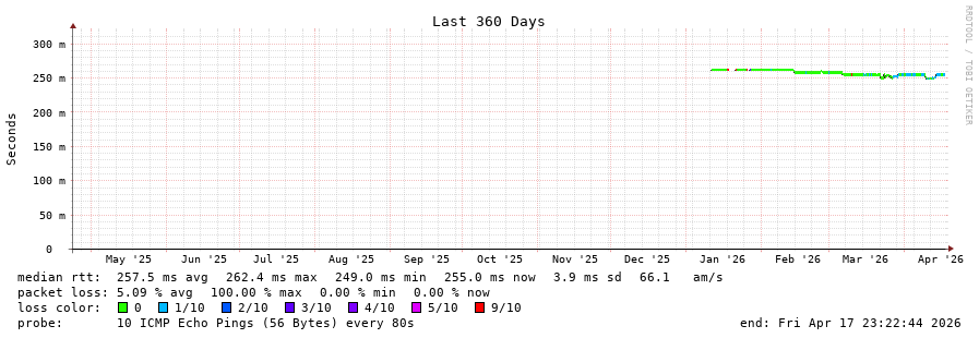18 > ns1.spmode.ne.jp (49.102.160.2) [AS9605] 254.756ms 254.838ms 254.782ms