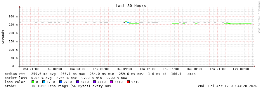 12 > 148.109.6.170 (148.109.6.170) [AS8220] 258.196ms 258.120ms 258.414ms