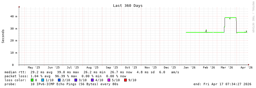 17 > 2001:b68:d:0:ee08:6bff:fe73:2da0 (2001:b68:d:0:ee08:6bff:fe73:2da0) [AS2108] 26.880ms 26.750ms 26.768ms