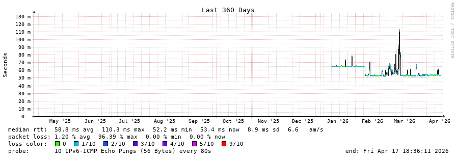 traceroute to 2001:35c0::204:27:68:152 (2001:35c0::204:27:68:152), 30 hops max, 80 byte packets - Generated at 2026-04-17 05:45:01