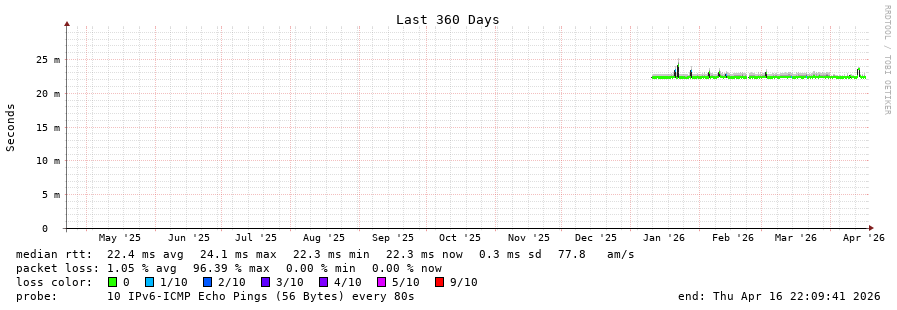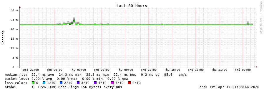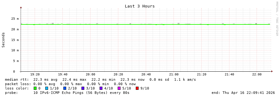 traceroute to 2a01:4f8:d0a:529e::2 (2a01:4f8:d0a:529e::2), 30 hops max, 80 byte packets - Generated at 2026-04-16 20:30:01