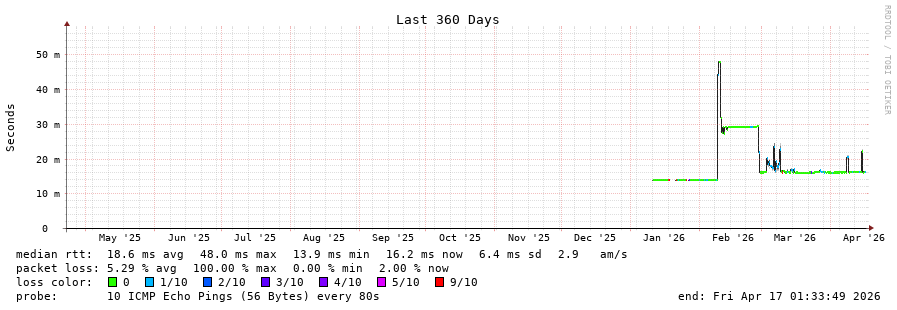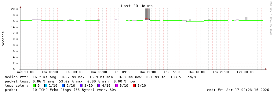 10 > freenet-ix-2.giganet.ua (185.1.62.41) [AS59613] 19.064ms 15.967ms 15.790ms