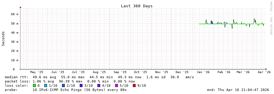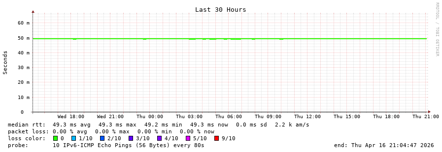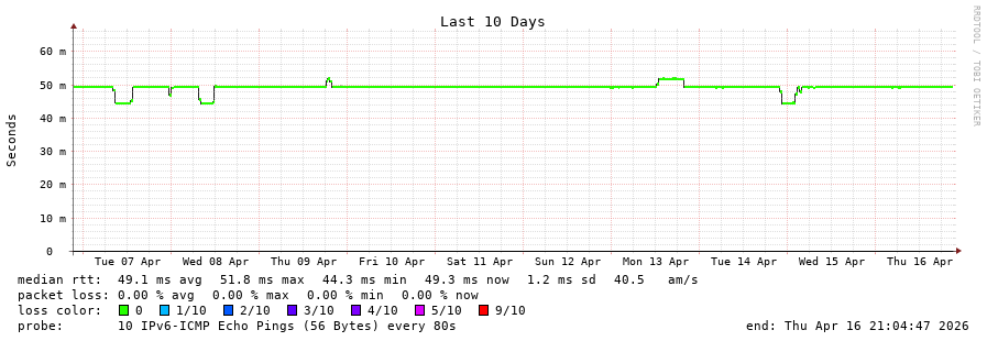 12 > 2a02:2f00:8708::e5 (2a02:2f00:8708::e5) [AS8708] 49.621ms 47.405ms 47.539ms