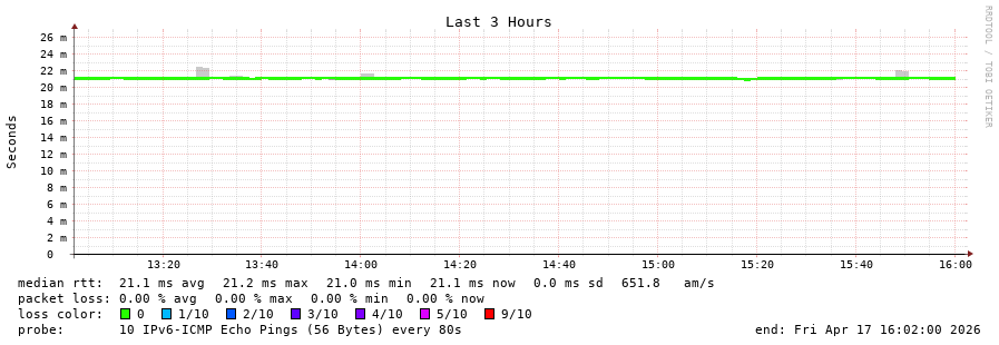 17 > fra1-lim.smokeping.ovh.net (2001:41d0:701:1000::b0f) [AS16276] 21.213ms 21.185ms 21.110ms