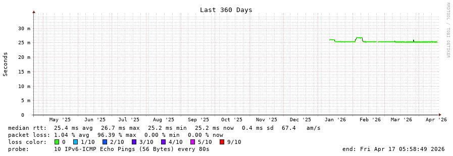 18 > lil2-gra.smokeping.ovh.net (2001:41d0:302:1000::18:665e) [AS16276] 25.447ms 25.167ms 25.035ms