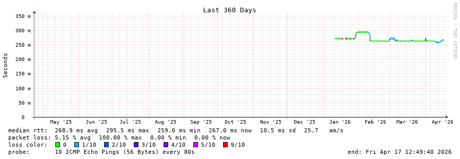 22 > syd1-sy2.smokeping.ovh.net (139.99.219.174) [AS16276] 267.327ms 267.337ms 267.180ms