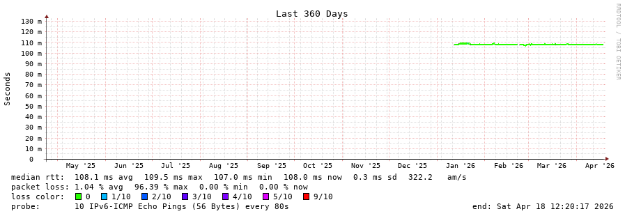 16 > 2604:2dc0:0:100::1:cb (2604:2dc0:0:100::1:cb) [AS16276] 107.703ms 107.729ms 107.656ms