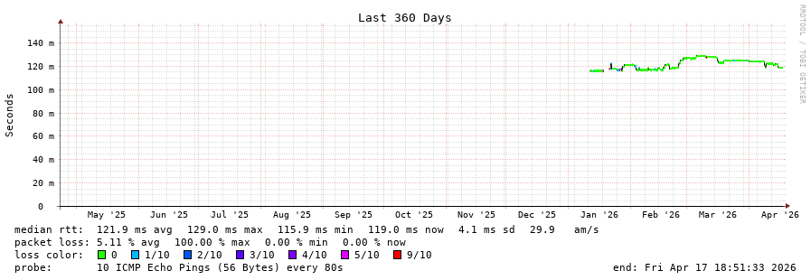 21 > yto1-yyz01.smokeping.ovh.net (72.251.3.31) [AS16276] 119.334ms 119.397ms 119.373ms