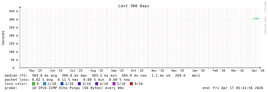 25 > 2402:1f00:8400::2:0:19c (2402:1f00:8400::2:0:19c) [AS16276] 305.399ms 305.401ms 305.372ms