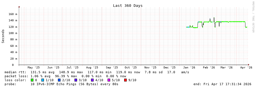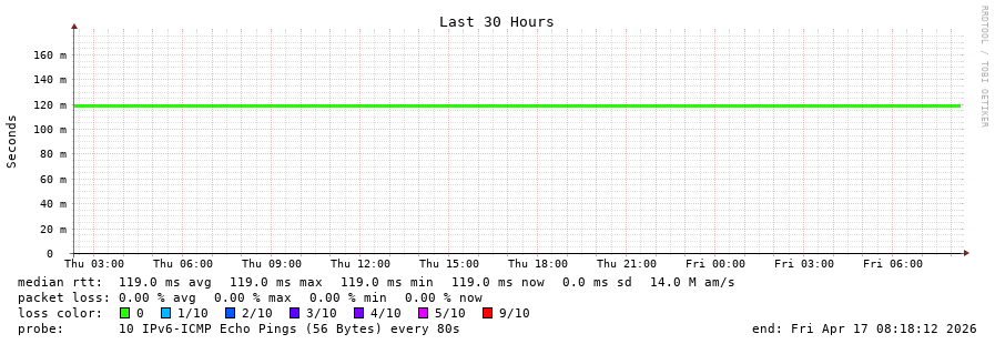 traceroute to 2604:2dc0:307::2:0:377 (2604:2dc0:307::2:0:377), 30 hops max, 80 byte packets - Generated at 2026-04-17 01:30:01