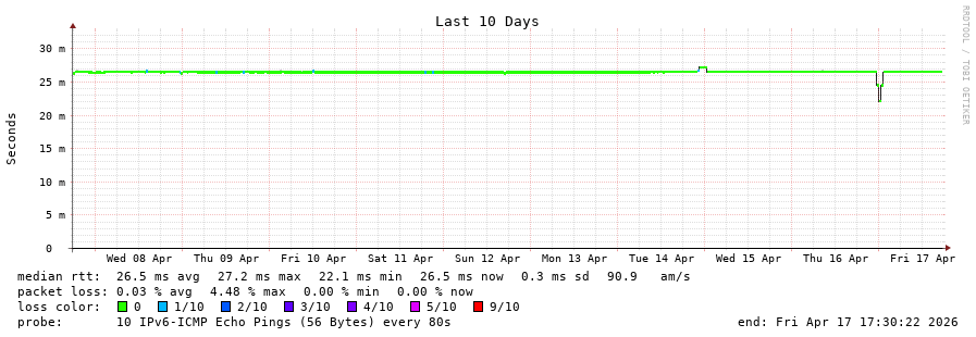 17 > 2001:41d0:ab0f::2:0:2a8 (2001:41d0:ab0f::2:0:2a8) [*] 26.599ms 26.538ms 26.519ms