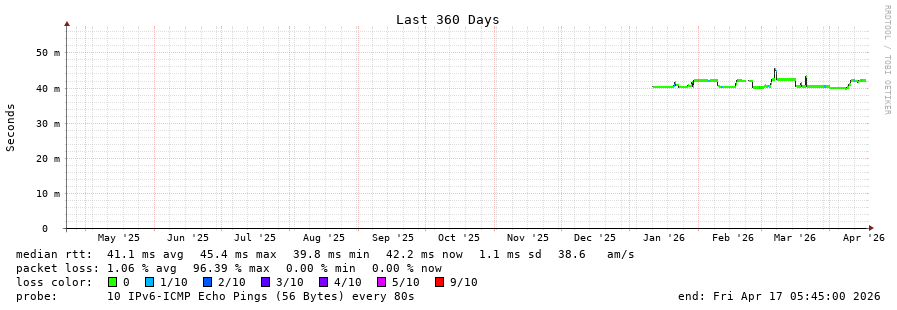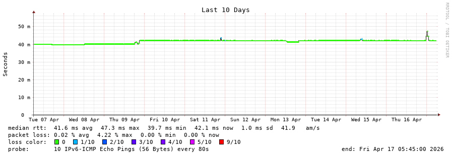 18 > 2001:978:2:60::61:17 (2001:978:2:60::61:17) [AS174] 44.490ms 47.666ms 44.461ms