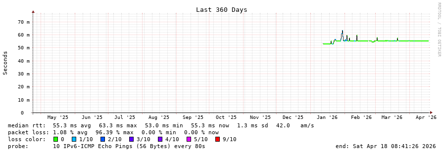 traceroute to 2001:41d0:ab11::2:0:262 (2001:41d0:ab11::2:0:262), 30 hops max, 80 byte packets - Generated at 2026-04-18 07:00:01