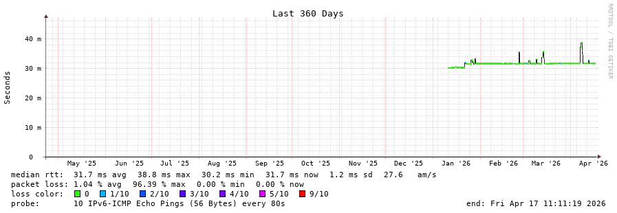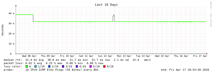 15 > 2001:978:2:30::12:7 (2001:978:2:30::12:7) [*] 35.089ms 33.929ms 34.403ms