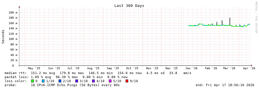 26 > 2604:2dc0:30b::2:0:2c0 (2604:2dc0:30b::2:0:2c0) [AS16276] 153.773ms 153.580ms 153.571ms