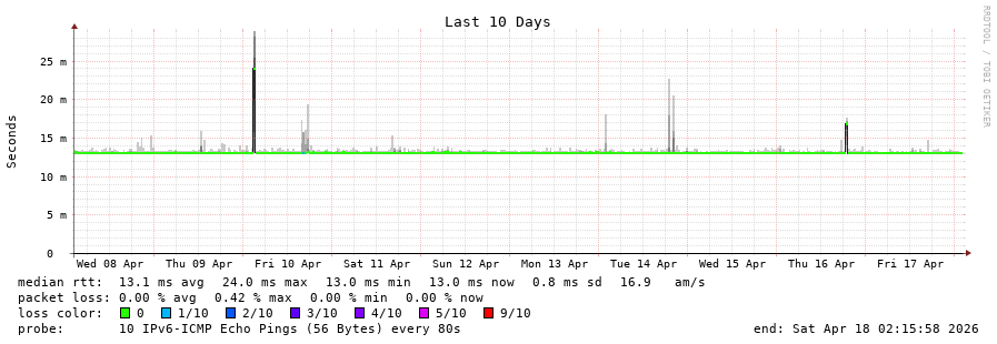 10 > vie-vie2-sbb1-8k.at.eu (2001:41d0::2792) [AS16276] 15.557ms 16.689ms 16.166ms