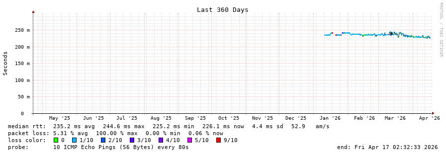 20 > 177.25.0.41 (177.25.0.41) [AS10429] 225.967ms 226.000ms 225.766ms
