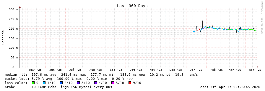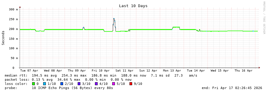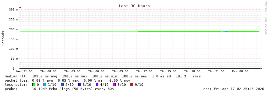 18 > 69.79.100.107 (69.79.100.107) [AS23520] 133.507ms 133.385ms 133.627ms