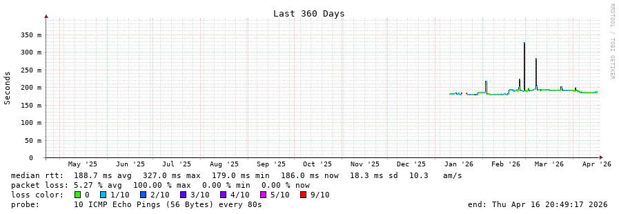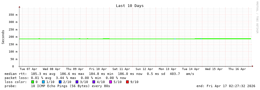 19 > 179.51.97.68 (179.51.97.68) [AS263210] 185.655ms 185.588ms 185.626ms