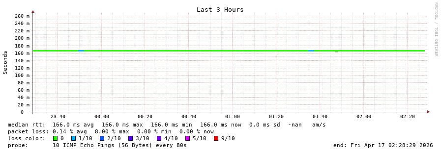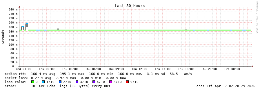 17 > 190.103.29.97 (190.103.29.97) [AS264628] 165.810ms 165.854ms 165.817ms
