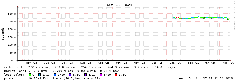 19 > 200.59.32.64 (200.59.32.64) [AS16732] 263.921ms 263.876ms 263.852ms