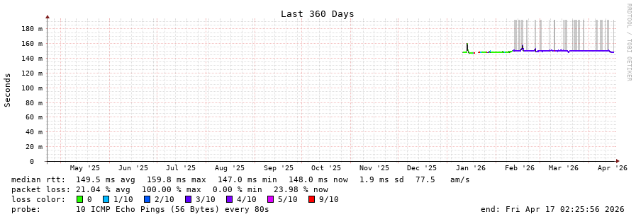 21 > lag-7.enwdcocd0aw-bar02.netops.charter.com (66.109.10.99) [AS7843] 149.121ms 149.210ms 149.113ms
